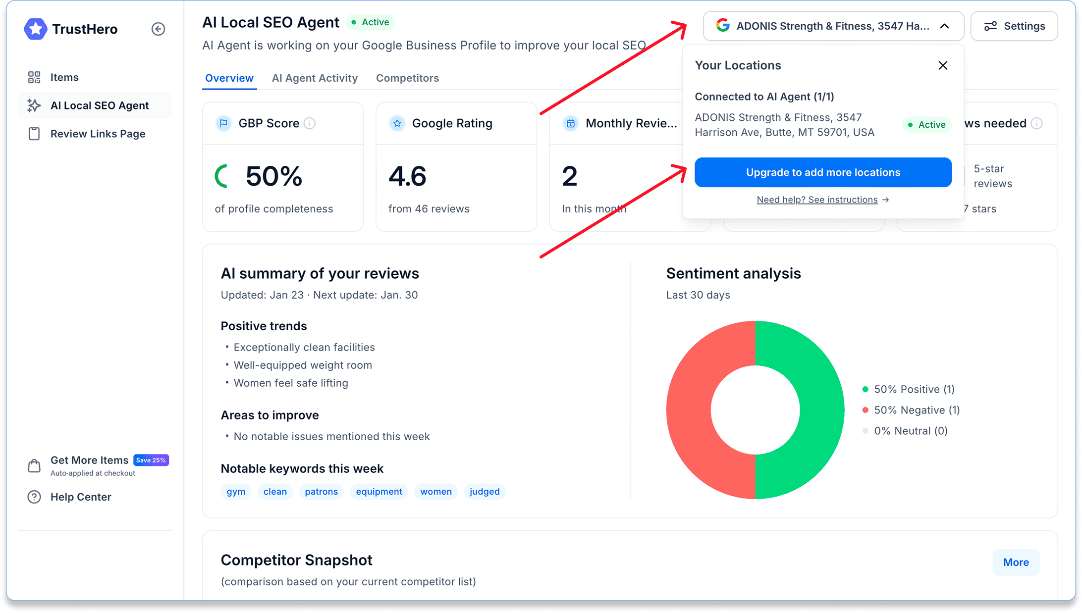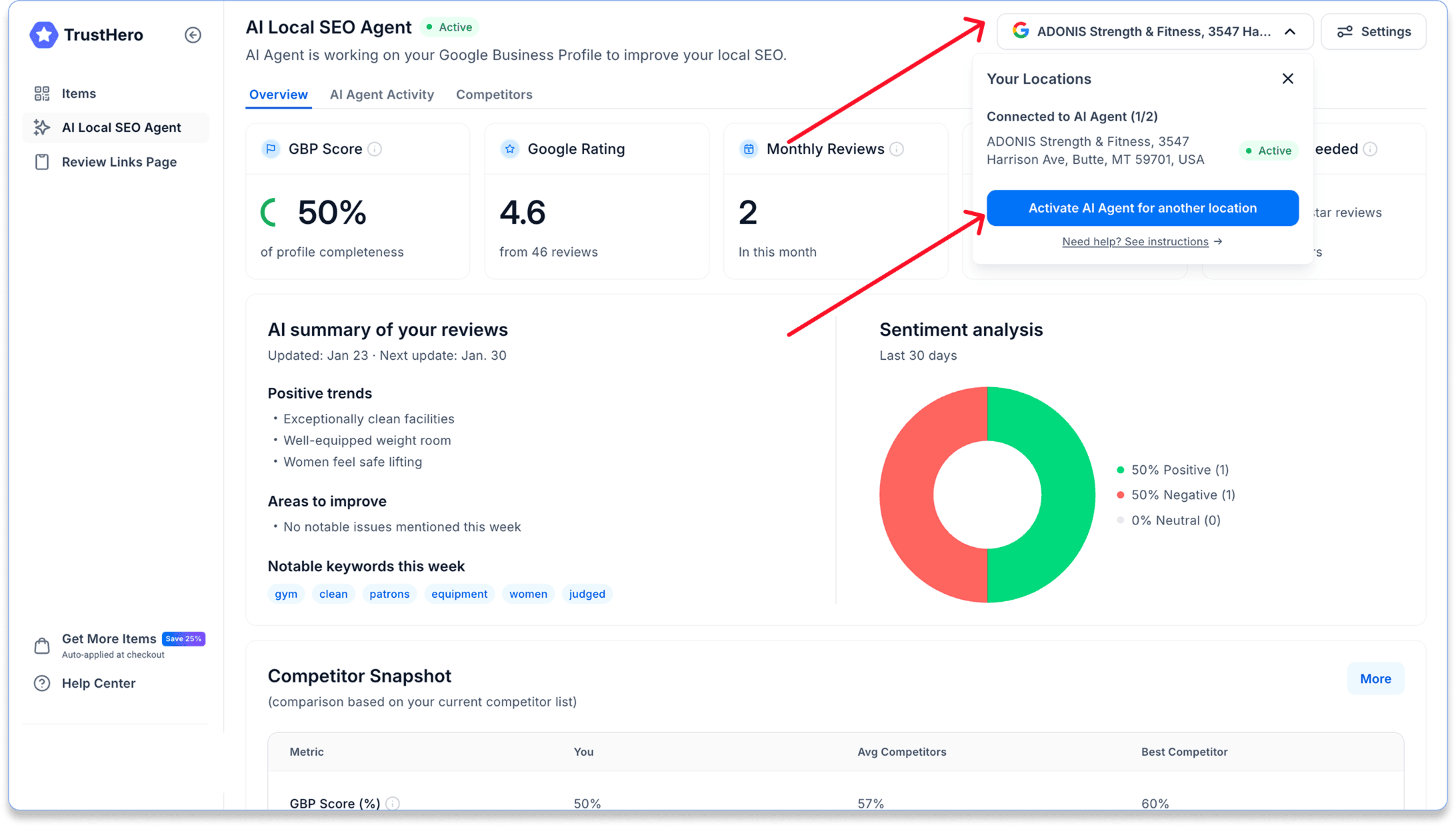 After that, your new location will be connected and ready to be managed by the AI Local SEO Agent.