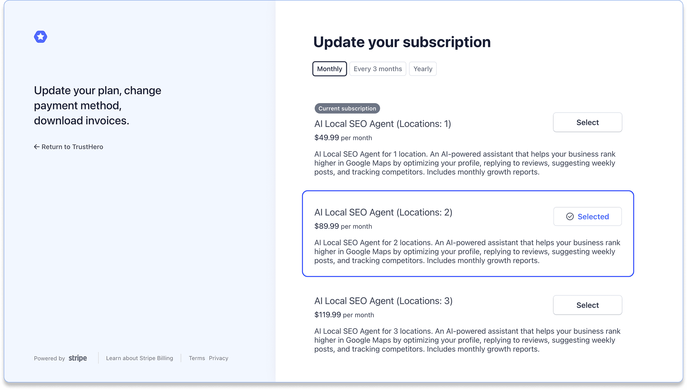 If your current plan includes only 1 location, you’ll need to upgrade to a plan with more locations before you can add them.