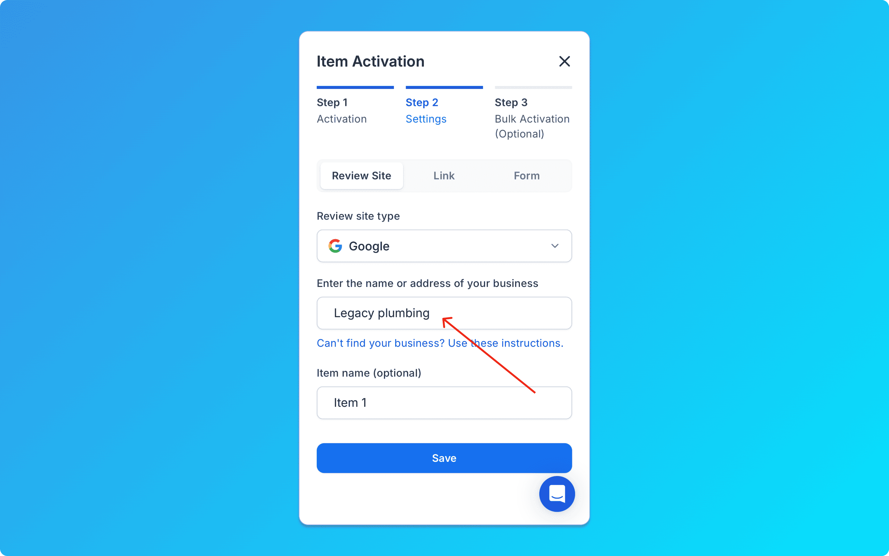 Note: If you can’t find your business using the search, you can add a direct link to your Google Business Profile under the “Link” tab.