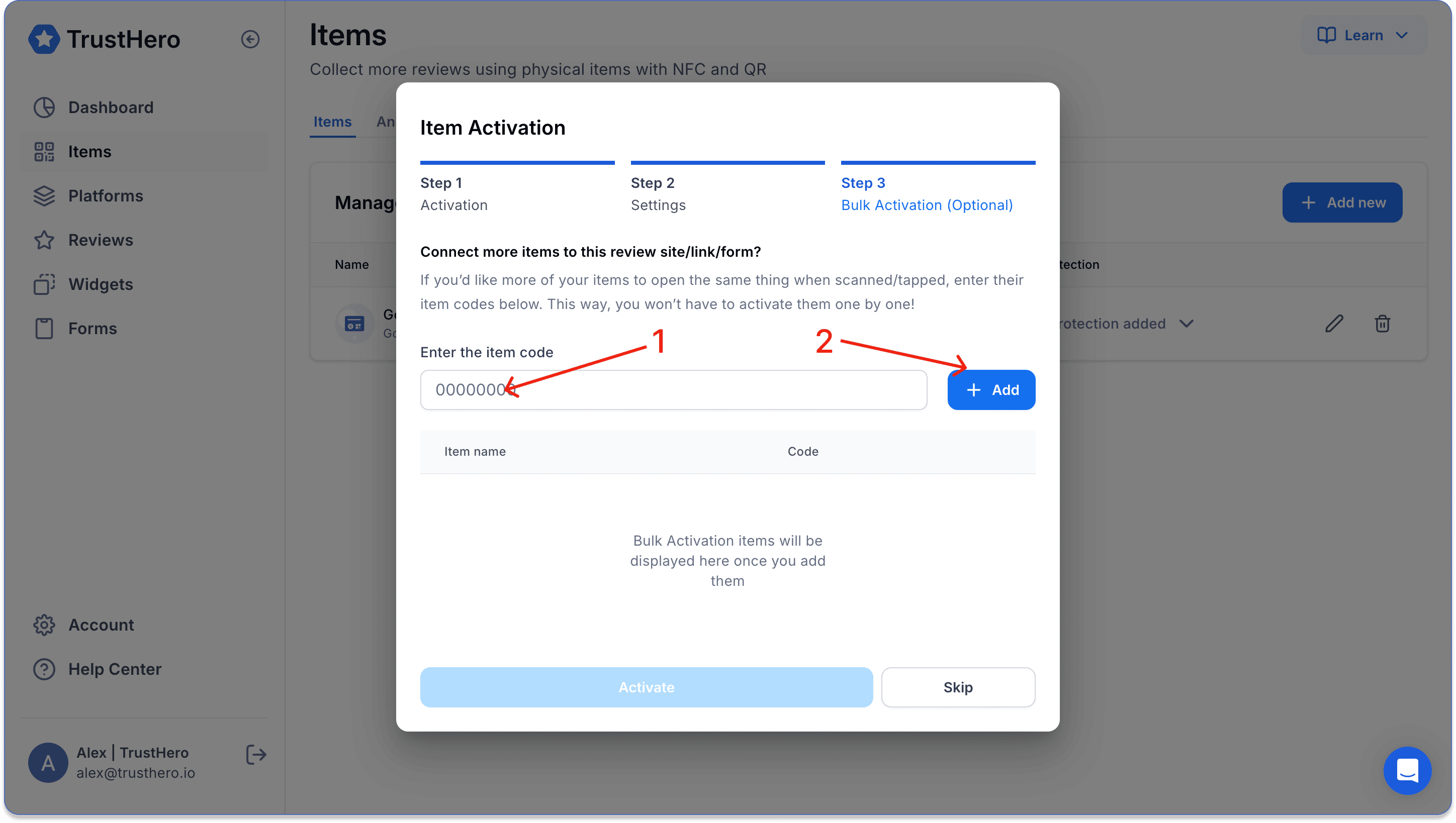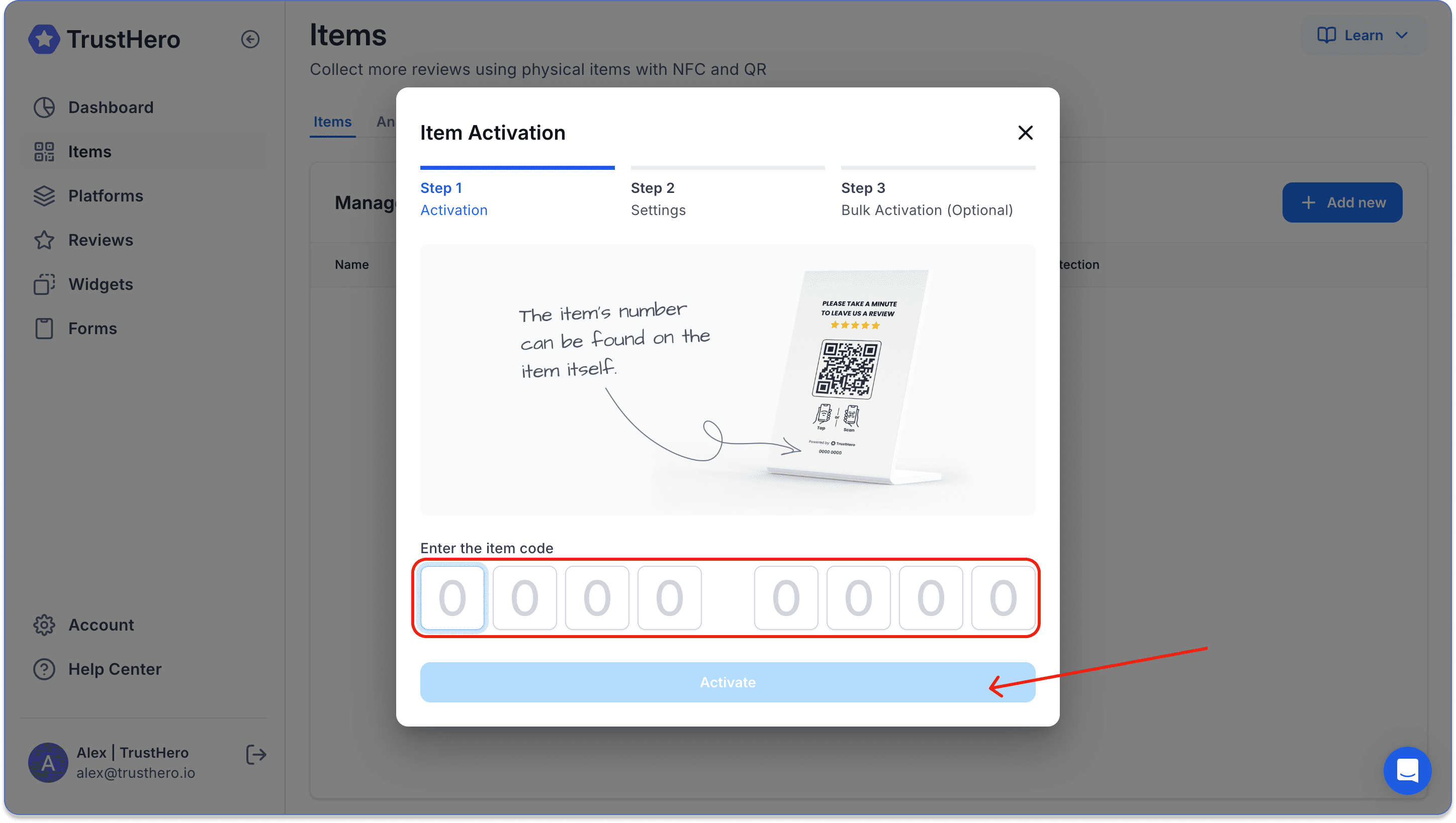 How to activate NFC/QR item (Card, Stand, Plate, etc.)